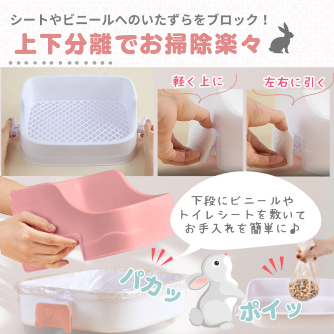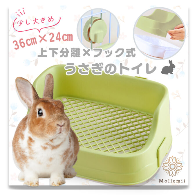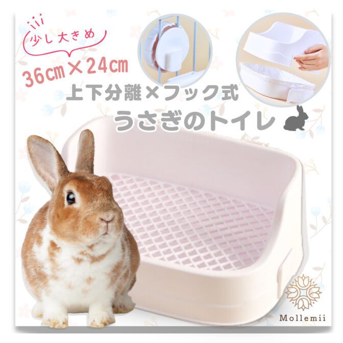 Mollemii うさぎ トイレ 36*24 上下分離式 ケージ固定 フック取り外し 隅までメッシュ網